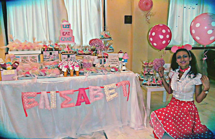 Με λίγα λόγια υπήρχαν γλυκά παντού: marshmallows, ζαχαρωτά, κουφέτα Crispo σε διάφορες γεύσεις, καραμέλες, γλειφιτζούρια, cupcakes, παγωτά και πάει λέγοντας, ενώ τα χρώματα που κυριάρχησαν ήταν το απαλό ροζ, το σιέλ & το φούξια.