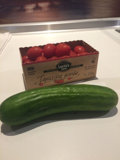 Κόβεις σε μικρά κομμάτια ένα ώριμο αβοκάντο!Προσθέτεις τοματίνια Lucia’s Farm & αγγούρι.