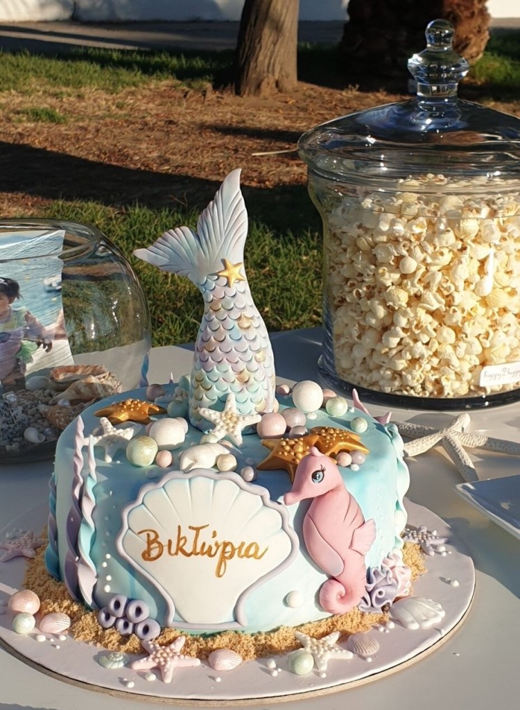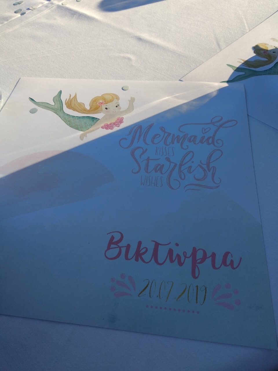 Σαν θέμα είναι της μόδας, όμως η αλήθεια είναι πως η γοργόνα μου είχε κολλήσει από όταν ετοίμαζα πέρυσι το φθινόπωρο ‘18 το παιδικό δωμάτιο της μπέμπας και είχαμε διαλέξει ταπετσαρία με γοργόνες. Η μεγάλη μου κόρη, η Ελισάβετ είναι γενικά ξετρελαμένη με τις γοργόνες, όποτε έτσι η επιλογή ήταν κάπως μονόδρομος. Το θέμα βέβαια εμπλουτίστηκε στην πορεία με κάβουρες 🦀 και ιππόκαμπους ώστε να μείνουν ευχαριστημένα και τα αγοράκια που θα έρχονταν στην βάπτιση.
