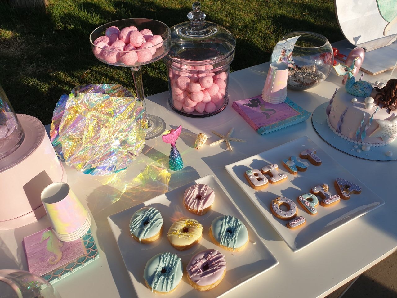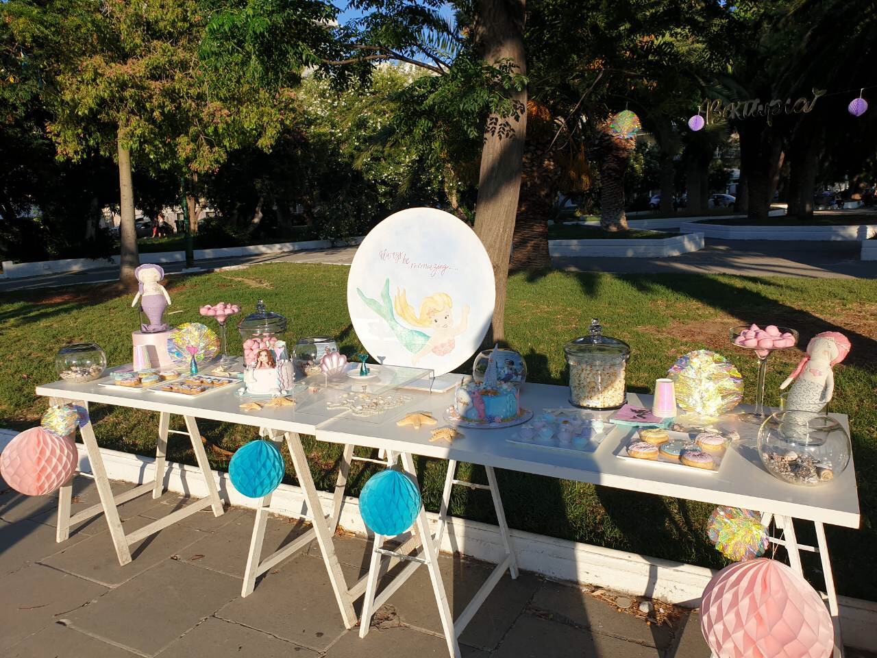 *Διακόσμηση candy bar, λουλούδια, προσωποποιημένα σουπλά & νεράκια, προσκλητήρια ουρά γοργόνας: Happy Happy