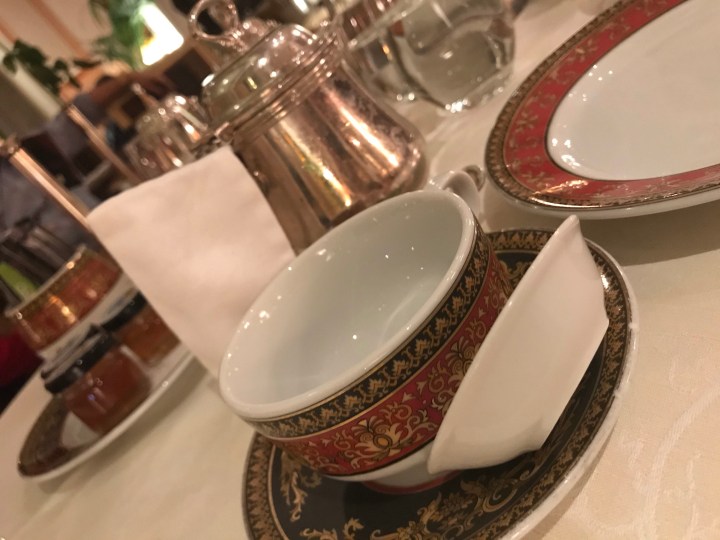 Δηλαδή: Αρωματικό τσάι (υπάρχει κατάλογος με ποικιλίες τσαγιού) ή καφές μαζί με τριώροφο δίσκο γεμάτο gourmet λιχουδιές-αλμυρές & γλυκιές-clotted cream/μέλι/λαχταριστές μαρμελάδες 😋 Και όλα αυτά σερβιρισμένα στα πιο τέλεια πορσελάνινα σερβίτσια!
