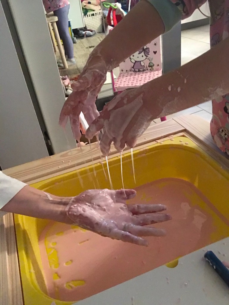 Μην ξεχνάτε πως το messy play μπορεί να λερώνει αρκετά, αλλά είναι για τα μικρά μας το πιο ελεύθερο, διασκεδαστικό και αισθητηριακό παιχνίδι που τα βοηθάει σε όλους τους τομείς της ανάπτυξης τους, στην αυτοπεποίθηση και την ανεξαρτησία τους✌🏻❤️ Συγκεκριμένα το oobleck είναι μια πλούσια αισθητηριακή εμπειρία, ηρεμιστική και χαλαρωτική, ασκεί την λεπτή κινητικότητα & είναι τέλειο να παρατηρείς το υλικό να μεταμορφώνεται από υγρό σε στέρεο και αντίστροφα 😉