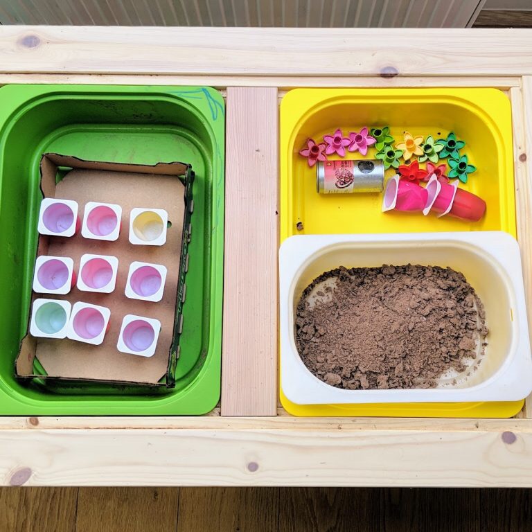 Υπάρχουν πραγματικά πολλά που μπορείτε να κάνετε σε έναν κήπο με τα παιδιά σας ώστε να τα κρατήσετε απασχολημένα για αρκετή ώρα, αλλά ακόμα και αν ο κήπος δεν είναι κάτι τόσο εύκολο, δοκιμάστε να φυτέψουν τα δικά τους λουλούδια (είτε αληθινά με πραγματικό χώμα σε μικρά γλαστράκια είτε ψεύτικα λαχανικά/λουλούδια & χώμα) δίνοντας τους όλα τα απαραίτητα σε ένα δίσκο-το flisat τραπεζάκι της ΙΚΕΑ είναι και γι’αυτή την δραστηριότητα ιδανικό!