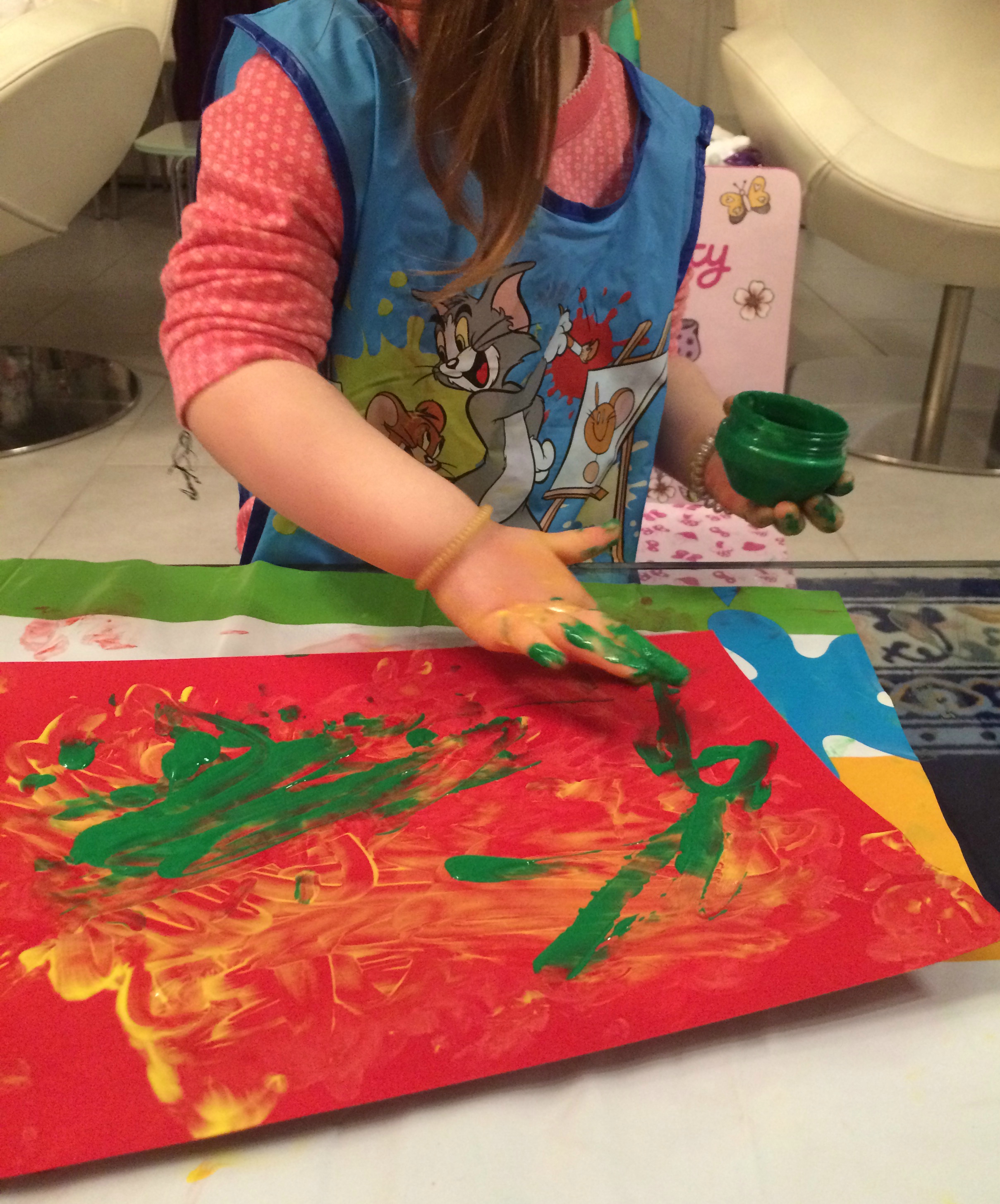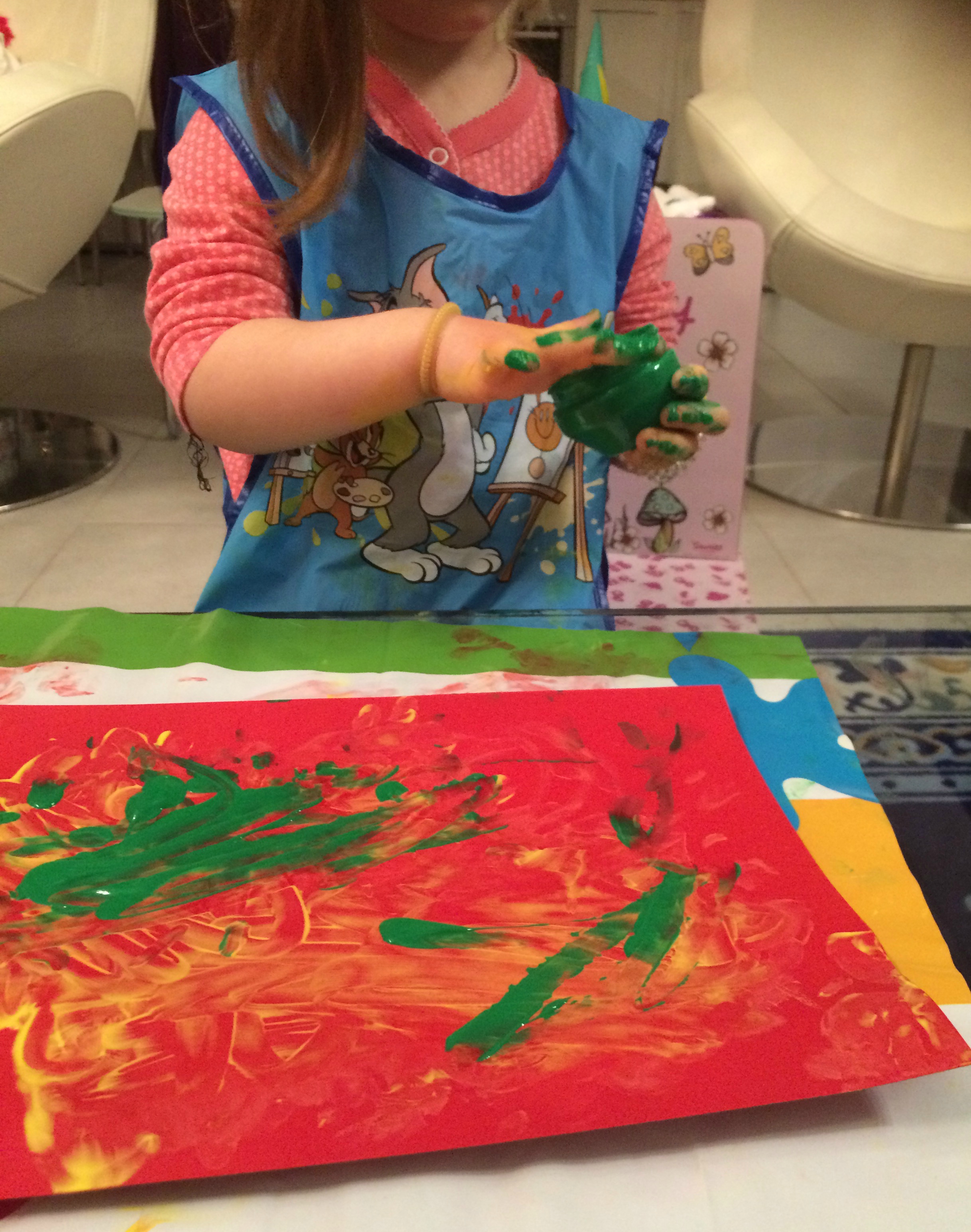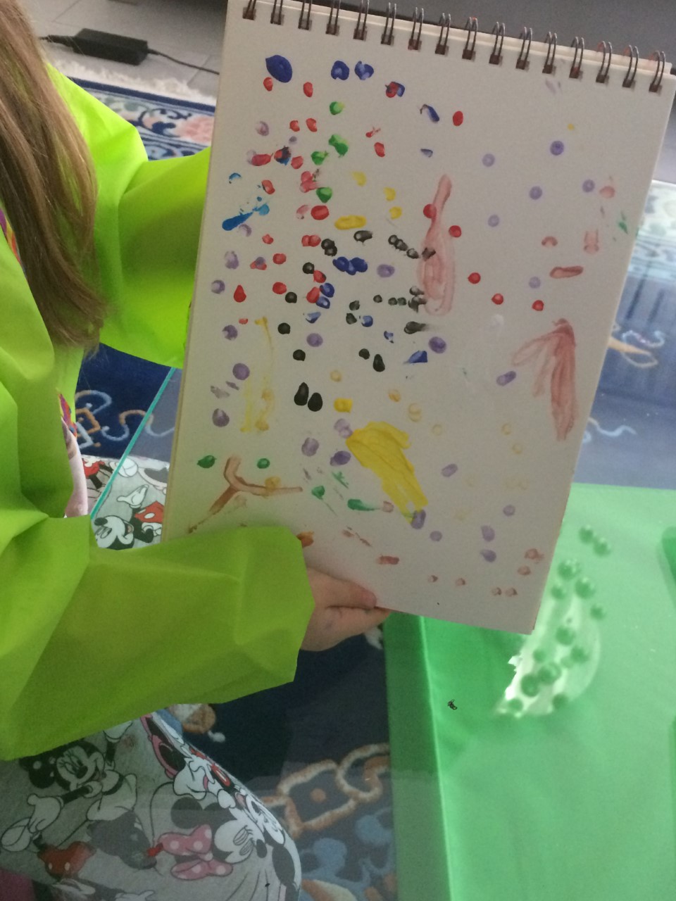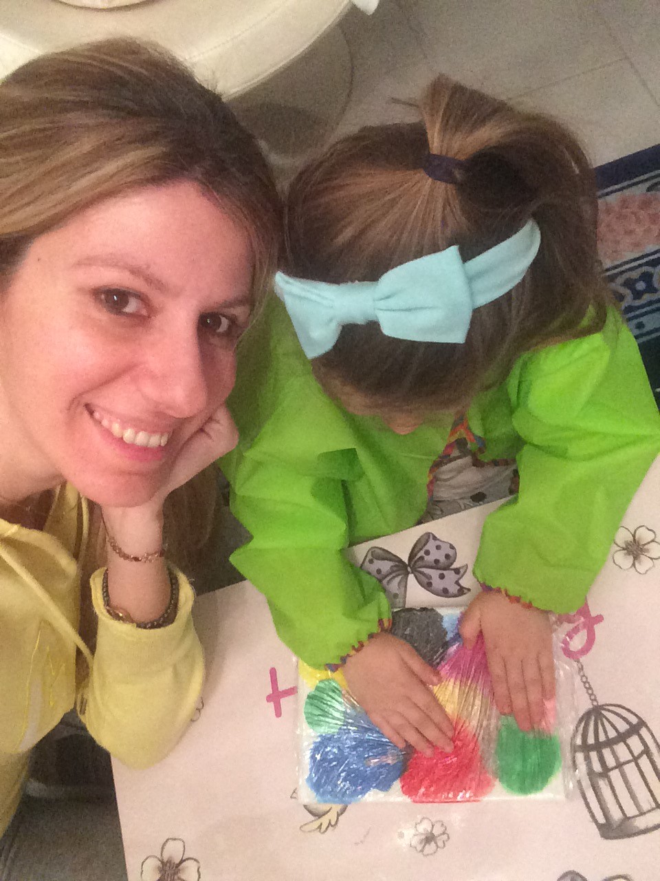 Βάζεις διαφορετικά χρώματα τέμπερας στον καμβά και από πάνω καλύπτεις με σελοφάν. Μετά αρχίζει το καλό😉 Με τα δάχτυλα, τα μικρά πιέζουν τα χρώματα τα οποία απλώνονται και αναμειγνύονται δημιουργώντας έργα τέχνης😍