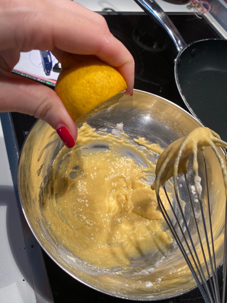 - Στο μπολ με τους κρόκους προσθέτεις το γάλα & τα ανακατεύεις με σύρμα. Έπειτα σιγά σιγά βάζεις τη φαρίνα που πρώτα την έχεις κοσκινίσει και στο τέλος και λίγες σταγόνες χυμό λεμονιού