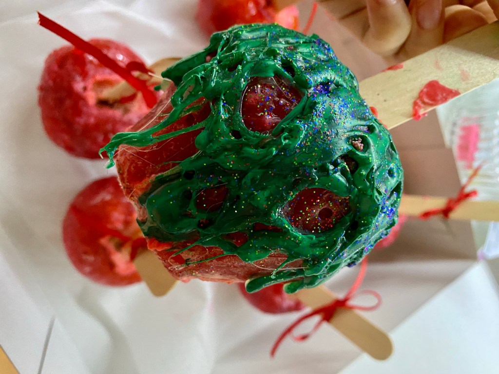& 2. Τα κόκκινα καραμελωμένα μήλα 🍎🍎που μας έφτιαξε η Πέπη Μπέζα!