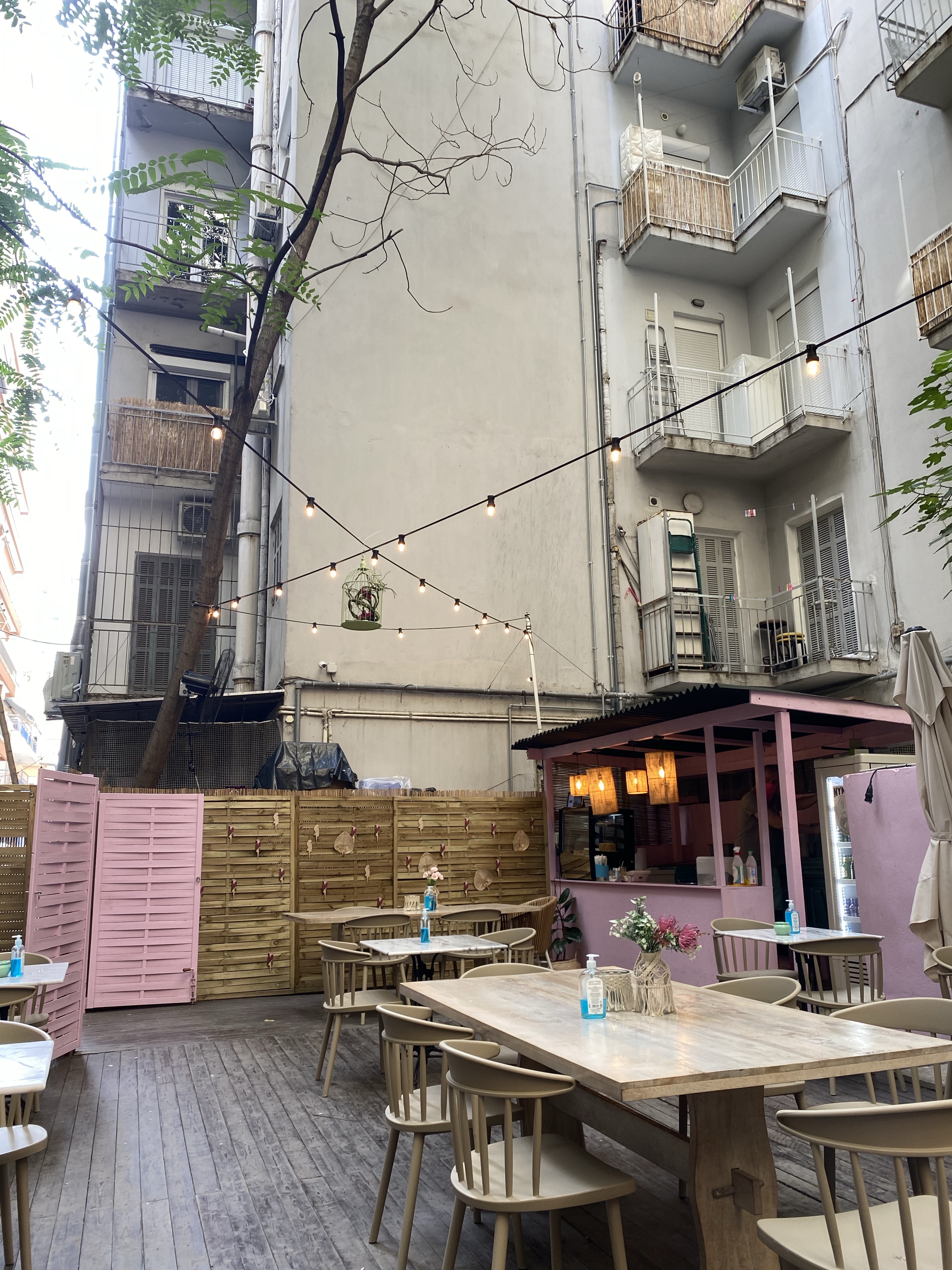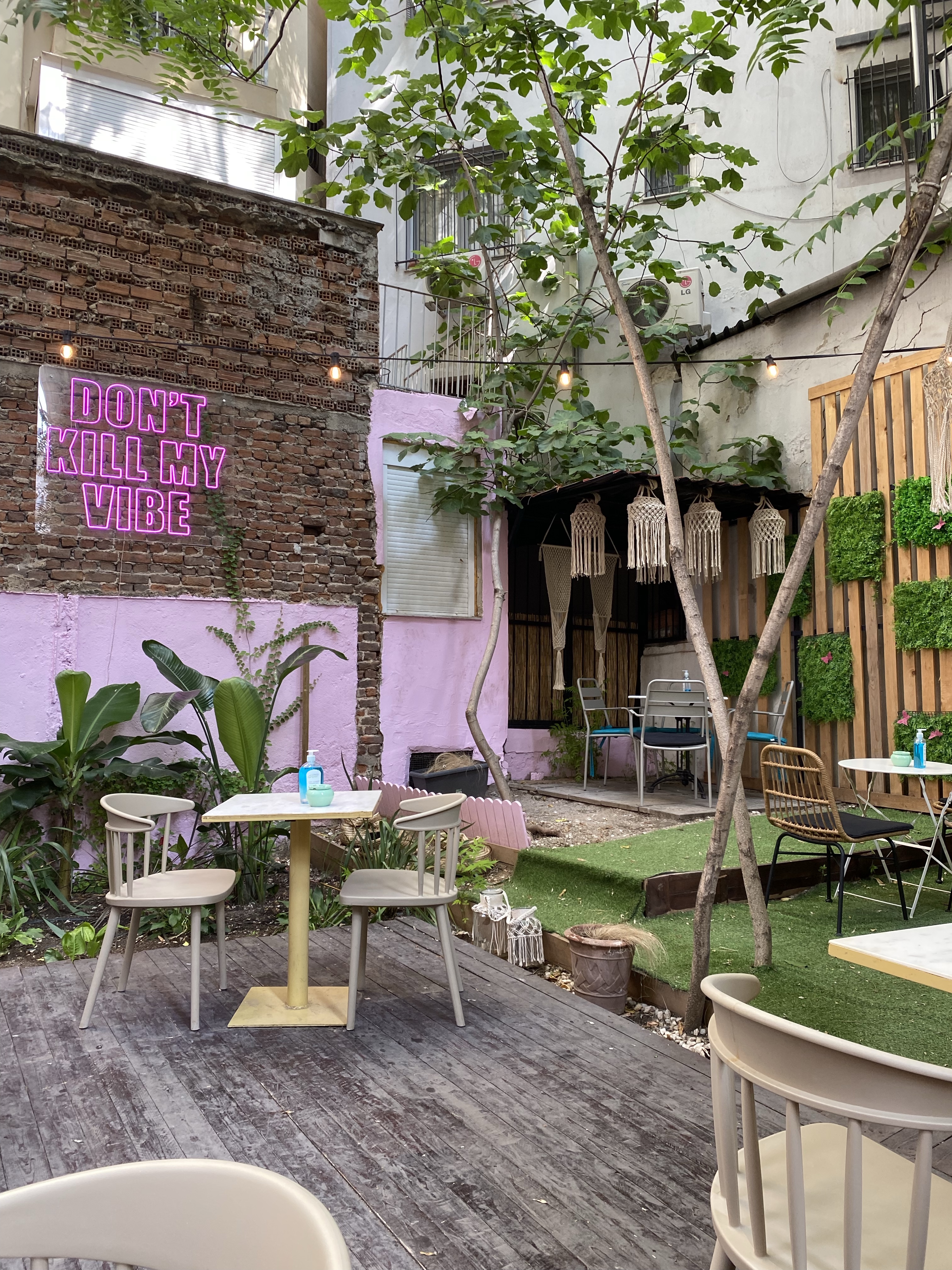 είναι απλά υπέροχος! Καταρχάς μοιάζει με ανθισμένο κήπο που είναι κατά κάποιο τρόπο κρυμμένος ανάμεσα στις πολυκατοικίες. Σαν μια όαση μέσα στην πόλη όπου κυριαρχεί το ροζ χρώμα, τα λουλούδια μαζί με neon signs & γενικά η garden διακόσμηση 🪴