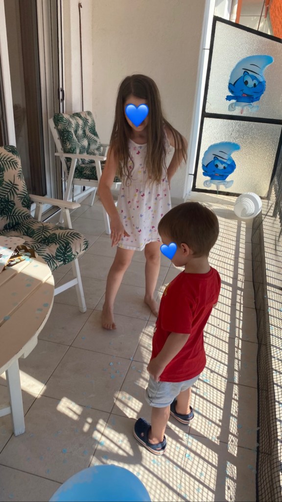 Παρακάτω σας έχω μερικές φωτογραφίες από αυτά που αγόρασα/στόλισα/ετοίμασα έχοντας βέβαια και τη βοηθεια της μεγάλης μου κόρης, Ελισάβετ, που χάρηκε πολύ την όλη διαδικασία. Στο τέλος βέβαια τρέχαμε να τα προλάβουμε όλα και να μην πάρει τα μπαλονια ο αέρας 😅🤪 το αποτέλεσμα όμως βγήκε όμορφο & πέτυχε η έκπληξη μιας και η αδερφή μου σίγουρα δεν περίμενε να δει το μπαλκόνι μας Στρουμφοστολισμένο με το που έφτασαν 🌴🌴😜