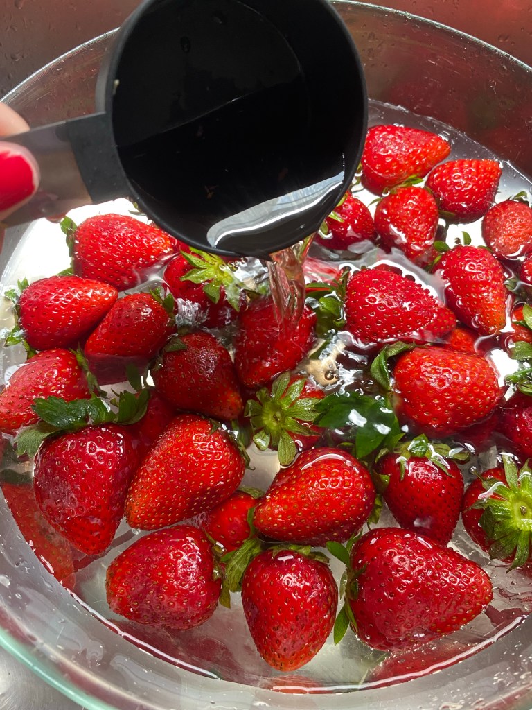 ‼️Το ξύδι είναι πολύ όξινο και μπορεί κάποιες φράουλες σε μερικά σημεία να χαλάσουν. Εναλλακτικά ως πιο ήπιο, μπορούμε να βάλουμε χυμό λεμονιού 🍋🍋