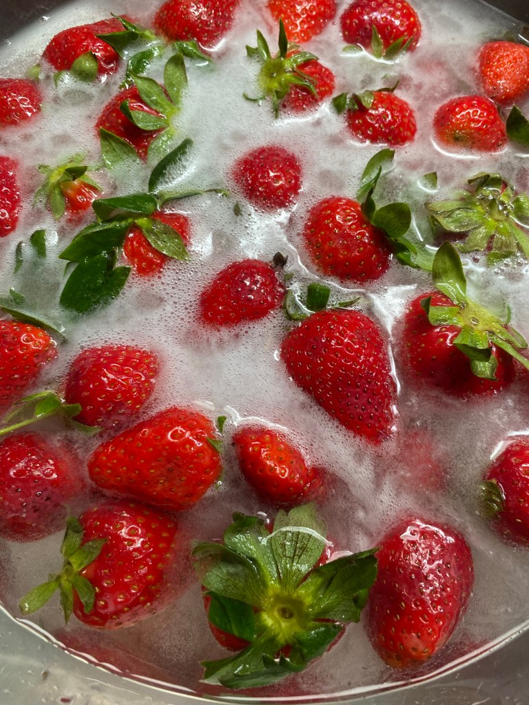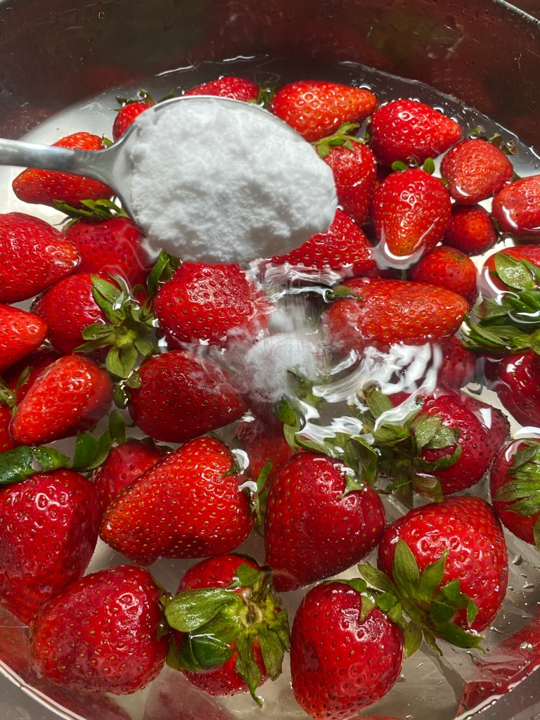 Είναι όμως πολύ βασικό να τις πλύνεις πρώτα παρά πολύ καλά, καθώς οι φράουλες είναι #1 στη λίστα της EWGs ως φρούτο στο οποίο χρησιμοποιούνται τα περισσότερα φυτοφάρμακα😮 και από μόνο του το νερό δεν αρκεί για να απομακρύνει όλες αυτές τις βλαβερές ουσίες. Προσωπικά επιλέγω πάντα βιολογικές που και πάλι όμως τις πλένω πολύ καλά ακολουθώντας τα παρακάτω βήματα: