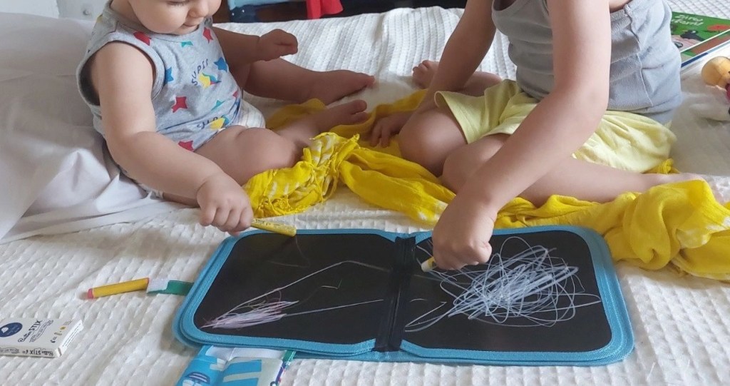 Αυτά τα βιβλιαράκια μαυροπίνακα είναι επίσης μια πολύ ωραία πρόταση απασχόλησης! Με 8 σελίδες μαυροπίνακα για να ζωγραφίσουν ό,τι τους αρέσει με κιμωλίες και το καλύτερο; Χωρίς σκόνη ή λεκέδες μιας και οι 4 μαλακές κιμωλίες Butterstix® σε 4 χρώματα που περιλαμβάνει η συσκευασία απελευθερώνουν μηδενική σκόνη… απίθανο;; Είναι επίσης μικρό σε μέγεθος, ελαφρύ και φορητό και είναι και οικολογικό αφού δεν ξοδεύετε καθόλου χαρτί και το καθαρίζετε με εξαιρετική ευκολία με ένα νωπό πανί ή μωρομάντηλο 🤩