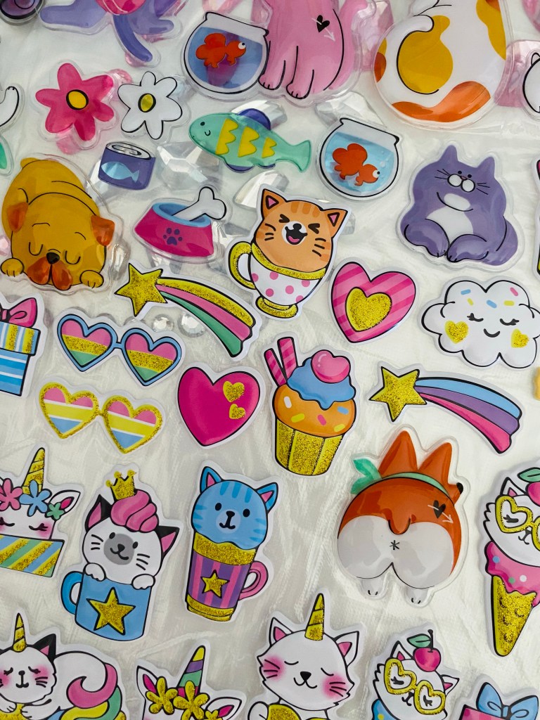 Τα αυτοκόλλητα σίγουρα γίνονται κάποια στιγμή αγαπημένα για κάθε παιδί 🤓 Και συνήθως αρχίζουν μετά να κάνουν ατέλειωτες συλλογές. Σαν απασχόληση είναι γενικά τραβηχτική, ακομα και για τα πιο μικρά παιδάκια που τους αρέσει να τα κολλούν και να τα ξανακολλούν. Γι’ αυτό επιλέξτε αυτοκόλλητα σε διάφορα σχέδια με έντονα χρώματα, τρισδιάστατα που είναι πιο «αφράτα» και φουσκωτά και σαν ποιότητα μπορείς να τα κολλήσεις/ξεκολλήσεις αρκετές φορές χωρίς να χαλάνε ☺️