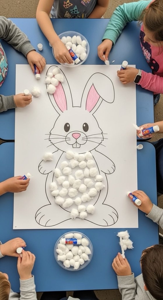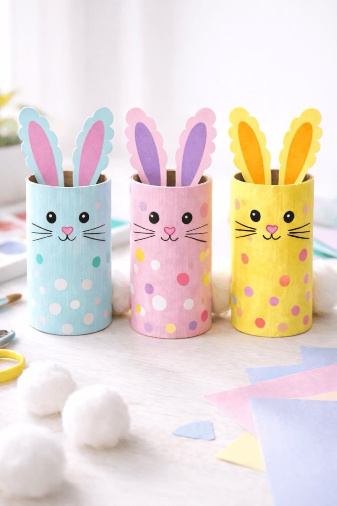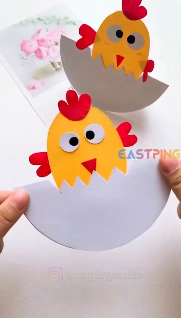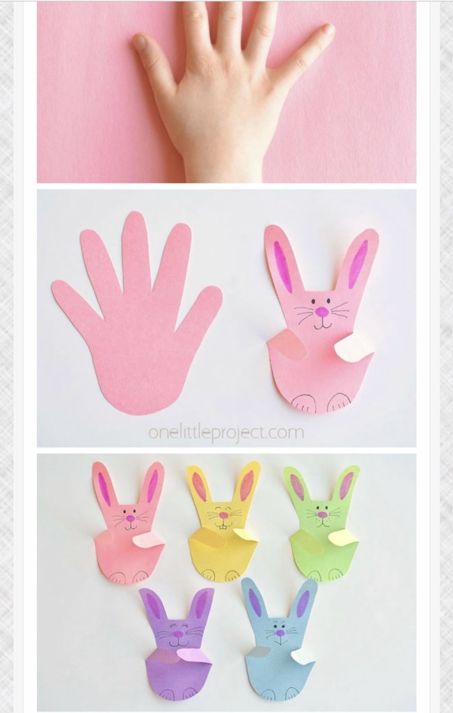 Κουνελάκια από ρολό χαρτί! Τα χρωματίζεις με όποιο χρώμα σου αρεσει, σχεδιάζεις μάτια, μύτη & μουστάκια & το μόνο έξτρα είναι τα αυτάκια που τα κόβεις σε χαρτόνι και τα κολλάς 🐰 📸 https://homesteadingwithbetty.comΑυτό πολύ μου άρεσε και εκτός ότι θα τα απασχολήσει για ώρα είναι και άσκηση για τη λεπτή κινητικότητα. Κόλλα λοιπόν και μπόλικο καλαμπόκι για το πιο γλυκό κοτοπουλάκι 🐣Αγαπώ αυτές τις χειροτεχνίες που μαζί είναι κ αναμνηστικό της ηλικίας τους.! Βάφεις τα χεράκια με άσπρο χρώμα και κάνεις το αποτύπωμά τους σε να χρωματιστό χαρτόνι. Συμπληρώνεις τα υπόλοιπα στοιχεία και φυσικά δεν ξεχνάς να κολλήσεις και λίγους σπόρους-καλαμπόκι 🌽🐓Αυτή η χειροτεχνία είναι ίσως και για λίγο πιο μεγάλες ηλικίες δλδ 5 και πάνω: βασικά θα χρειαστείτε ξύλινα κουταλάκια, χαρτόνια σε διάφορα σχέδια κ χρώματα για να γίνουν φορέματα & κόλλα. Με χαρτόνι θα κόψετε και θα κολλήσετε τα αυτάκια και φυσικά με την φαντασία ελεύθερη μπορείτε να δημιουργήσετε ολόκληρη οικογένεια 🐰🐰🐰🐰Και αυτό αναμνηστικό, αυτή τη φορά με πατούσα για να βγει ένα γλυκύτατο κουνελάκι.! Μην ξεχάσεις ένα φουντωτό πομ πομ ή βαμβάκι μπαλίτσα για ουρά 🐇😁Κι άλλη χειροτεχνία με χεράκι αυτή τη φορά χωρίς όμως να λερωθείτε, απλά θα κόψετε το σχήμα του χεριού με το ψαλίδι, κρατάς δείκτη και παράμεσο για αυτάκια και κατεβάζεις τα υπόλοιπα δαχτυλάκια, σχεδιάζεις το μουτράκι του λαγού κ έτοιμα 🐰🐰Αυτή η χειροτεχνία προωθεί και τη συνεργασία😁 είτε ζωγραφίζεις έναν μεγάλο λαγό σε χαρτόνι είτε τον εκτυπώνεις, τους δίνεις βαμβάκι ιδανικά μπαλίτσες ή πομ πομ & φυσικά κόλλα 😉 📸 ohcuriosity.comΚλείνω με αυτή που είναι τέλεια γιατί έχει κ κίνηση. Βασικά κόβεις ένα στρογγυλό άσπρο χαρτόνι και το διπλώνεις στη μέση. Σχεδιάζεις στη μέση του και κόβεις κομμάτια σαν εγκοπές. Για το κοτοπουλάκι κόβεις σε οβάλ σχήμα κίτρινο χαρτόνι, το κολλάς στο άσπρο αβγό 🥚και συμπληρώνεις και τα υπόλοιπα χαρακτηριστικα-μπορείς να κολλήσεις και έτοιμα ματάκια & voila έχεις ένα κουνιστό αβγουλάκι με το κοτοπουλάκι να ξεπροβάλλει 😉🐣🐥**μπορείς με τον ίδιο τρόπο να φτιάξεις κ κουνελάκι με πορτοκάλι χαρτόνι ως βάση σαν καρότο 🥕