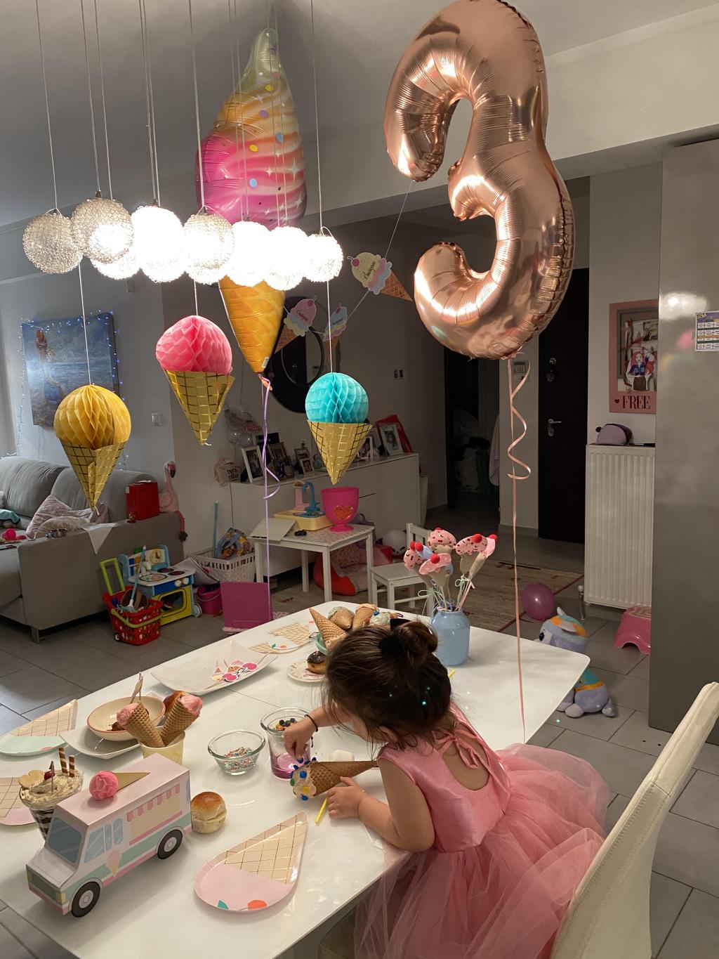 Νοέμβρη μήνα τρώει κανείς παγωτό.;;… 😜😋🍦Η μικρή μου Βικτώρια έχεις τρέλα με τα παγωτά-μπορεί να φάει μέχρι σκασμού (!)- και έτσι η επιλογη του θέματος του πάρτι για τα 3α γενέθλιά της ήταν μονόδρομος: είχαμε παγωτά παντού, γεγονός φυσικά που την ενθουσίασε 😁🍦🍦 Η αλήθεια είναι ότι και για μένα ήταν πολύ ευχάριστο το συγκεκριμένο